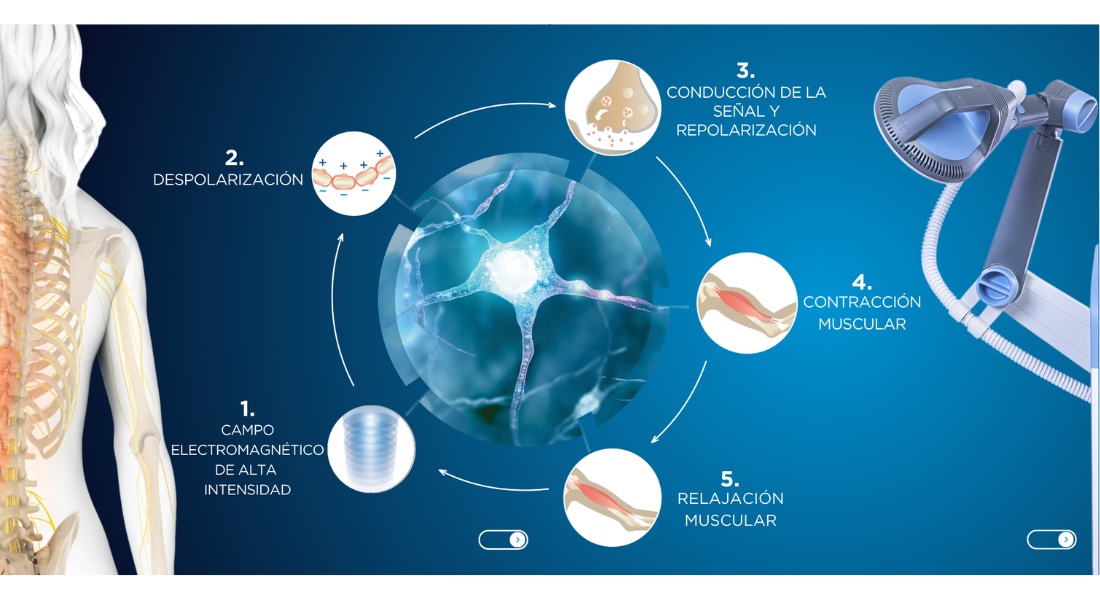 Su campo electromagnético de alta intensidad acelera la recuperación de tejidos especialmente indicado en fracturas y edemas óseos, pero igualmente indicado en tejido blando (músculos, tendones y ligamentos).Con resultados visibles desde las primeras sesiones.